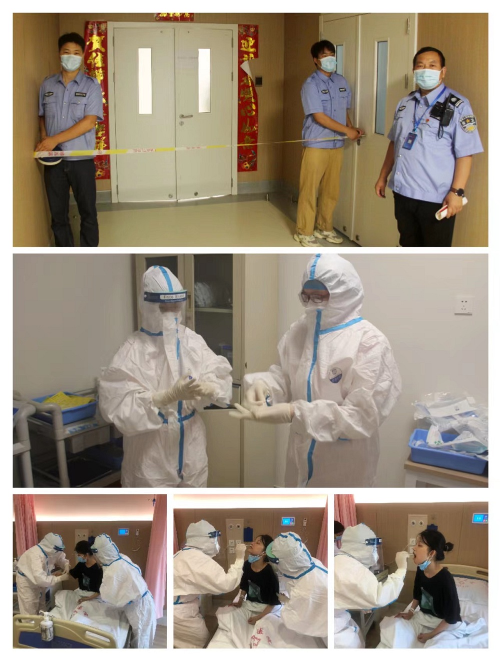 15時,主管醫(yī)師接到檢驗科電話后立即報告科主任及護士長??浦魅坞娫捝蠄筢t(yī)院疫情防控指揮部。醫(yī)院疫情防控指揮部通知婦產(chǎn)科和急診科進入封控管理狀態(tài),婦產(chǎn)科和急診科護士長通知全體在班醫(yī)護人員、保潔員不得離開病區(qū)(原則上只進不出),所有患者、陪護在病房內(nèi),不得出入、相互之間保持安全距離。同時指派兩名護士在走廊巡視,禁止其他患者及陪護人員隨意出入病房,做好病區(qū)內(nèi)患者的解釋和安撫工作。急診科和婦產(chǎn)科均暫停接診。