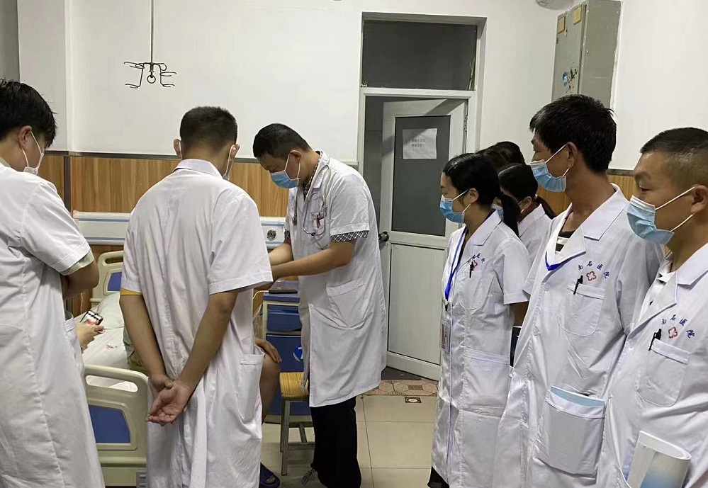 在腦科樓四樓神經(jīng)內(nèi)科一病區(qū),四五個(gè)學(xué)員一組,圍著帶教老師學(xué)習(xí)。在帶教老師朱新臣主任身邊,朱主任大家時(shí)而傾聽講解,時(shí)而討論,時(shí)而提問,朱主任把今年積累的典型病例都挑出來,一一給學(xué)員而心講解,并用更直觀、生動(dòng)的模具及圖片等來講解腦血管病的一系列問題,學(xué)員們用心做好筆記,學(xué)習(xí)氛圍濃厚。