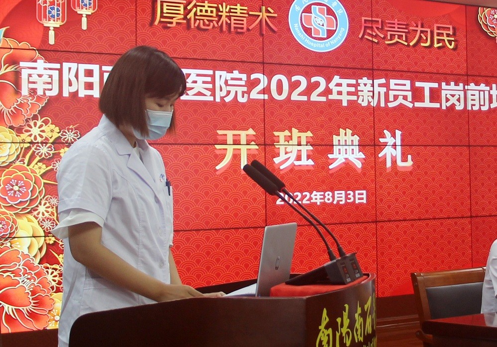 開班典禮由南石醫(yī)院執(zhí)行院長李獻哲主持;南石醫(yī)院黨委書記、院長趙俊祥做重要講話;人力資源部主任馮自武為新員工提出了幾點要求。