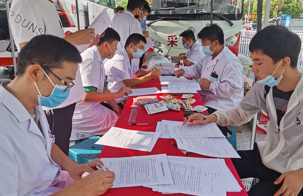 7月27日,南陽(yáng)市中心血站兩輛采血車停靠在南石醫(yī)院門診樓前廣場(chǎng),醫(yī)院?jiǎn)T工自覺(jué)自愿走上采血車,紛紛挽起袖子,加入到無(wú)償獻(xiàn)血隊(duì)伍中去。